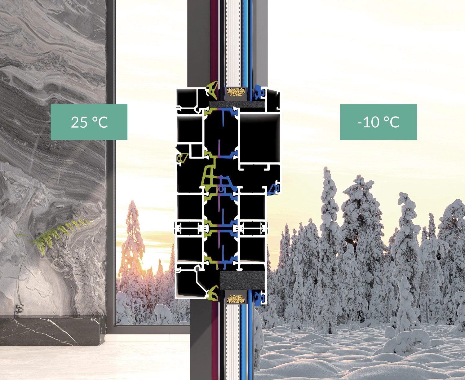 Gioăng EPDM, khung kính hộp (double/triple glazed) và khoảng khí/khí trơ quyết định phần lớn hiệu quả hệ thống (không chỉ profile). Tổ hợp profile + kính tạo ra Uw (U-value tổng thể).
