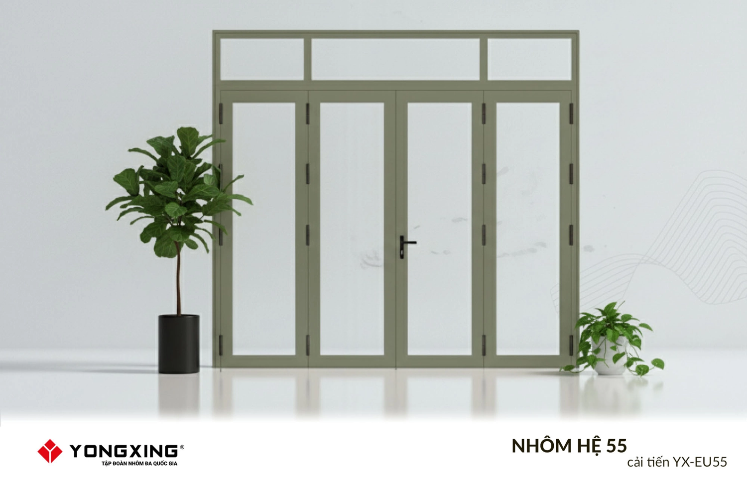Với những đặc tính trên, nhôm hệ 55 Yongxing thực sự là một giải pháp toàn diện, kết hợp hoàn hảo giữa độ bền cơ học, tính thẩm mỹ đa dạng và khả năng ứng dụng rộng rãi. Sản phẩm nhôm đa dạng, từ dòng kinh tế vát cạng YX555 đến dòng cải tiến chất lượng cao như VH8090, YX-EU55 chắc chắn sẽ giúp bạn tìm thấy giải pháp phù hợp nhất cho công trình của mình.